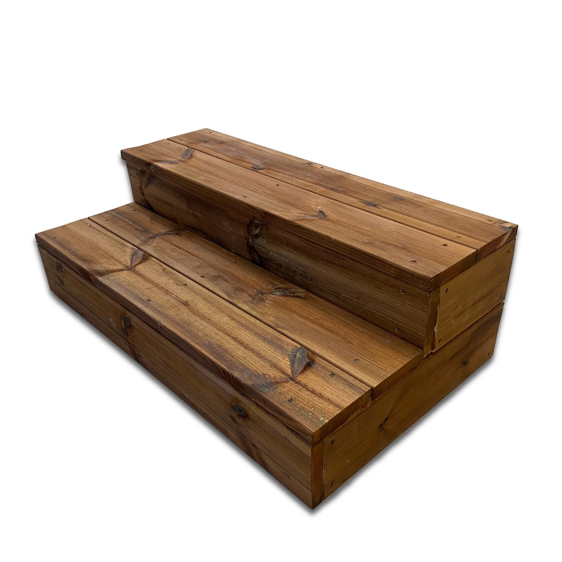 Informações adicionais: O degrau PATIO é fácil de instalar e não requer ferramentas ou conhecimento especializado. É adequado para diversas aplicações, como entradas de deck, portas frontais ou como auxílio para entrar em uma banheira de hidromassagem externa. A manutenção regular envolve tratar a madeira com um agente protetor ou óleo a cada 1-2 anos, com a opção de tingir a madeira para uma aparência personalizada.