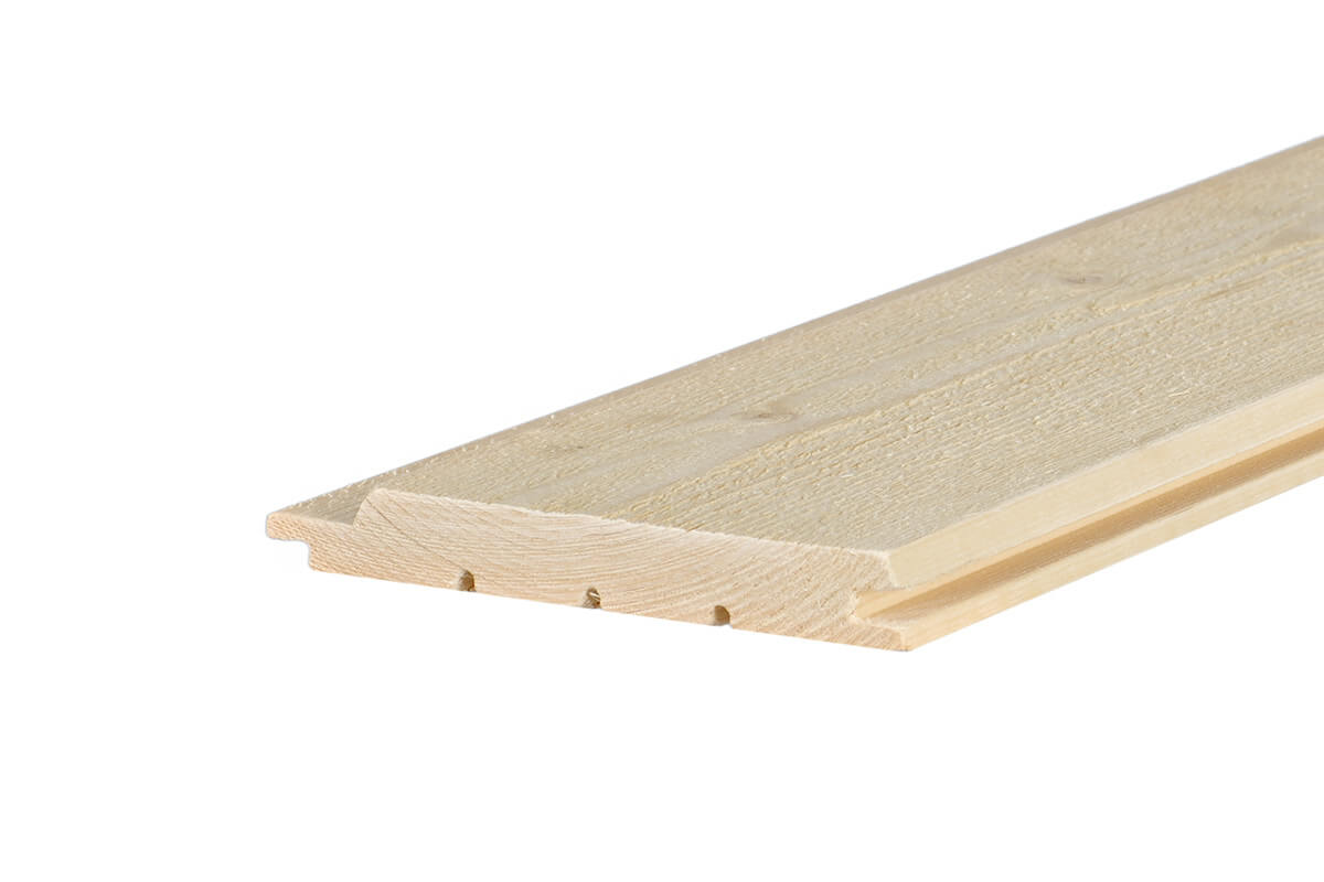 Painel de revestimento exterior UTV 23×145 mm em abeto pré-imprimado, pronto para a pintura final. Oferece um acabamento elegante e uniforme para fachadas, com excelente durabilidade, resistência às intempéries e estabilidade dimensional. Ideal para revestimentos de paredes exteriores, fachadas, beirados, alpendres e projetos de renovação com um toque moderno e sofisticado.