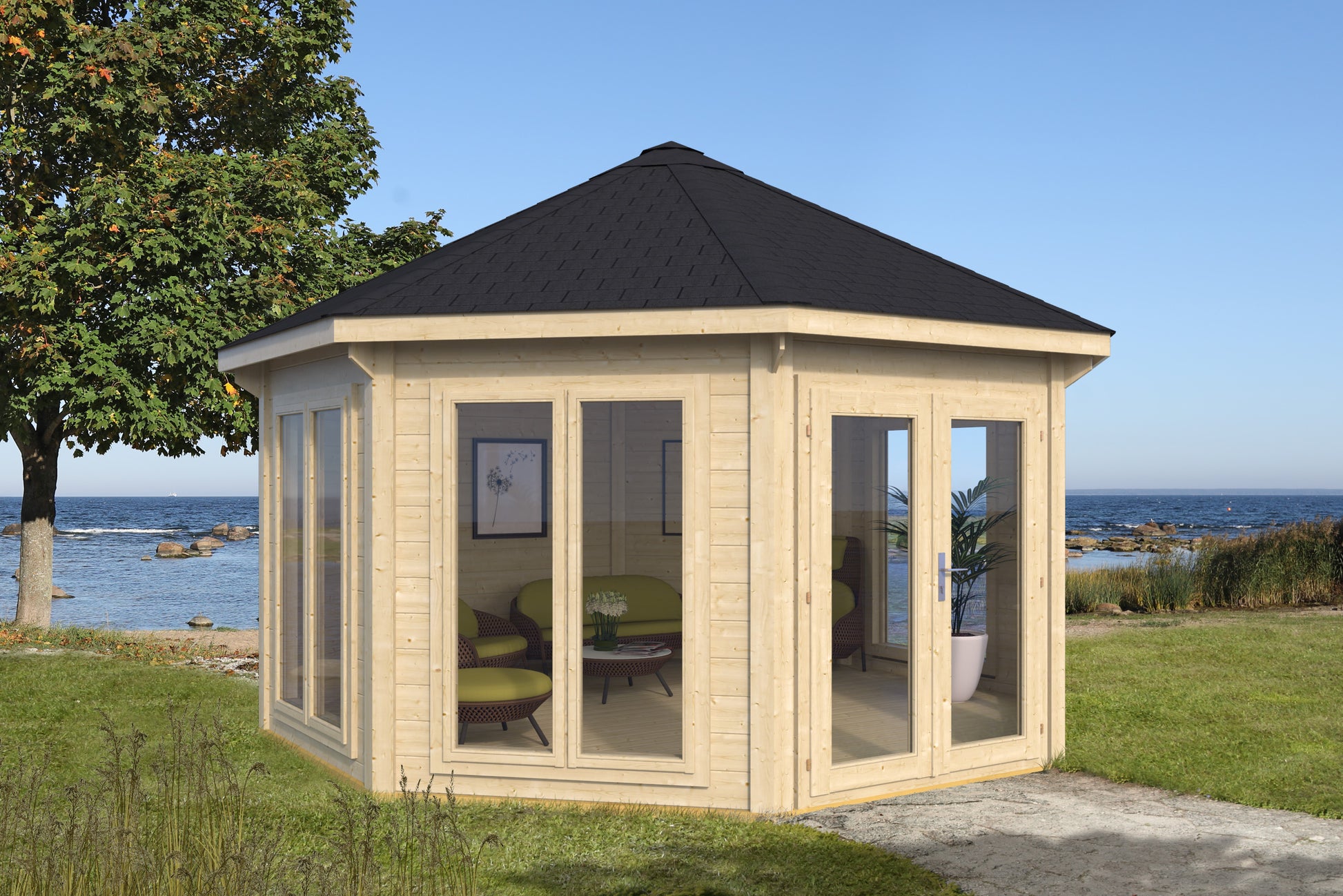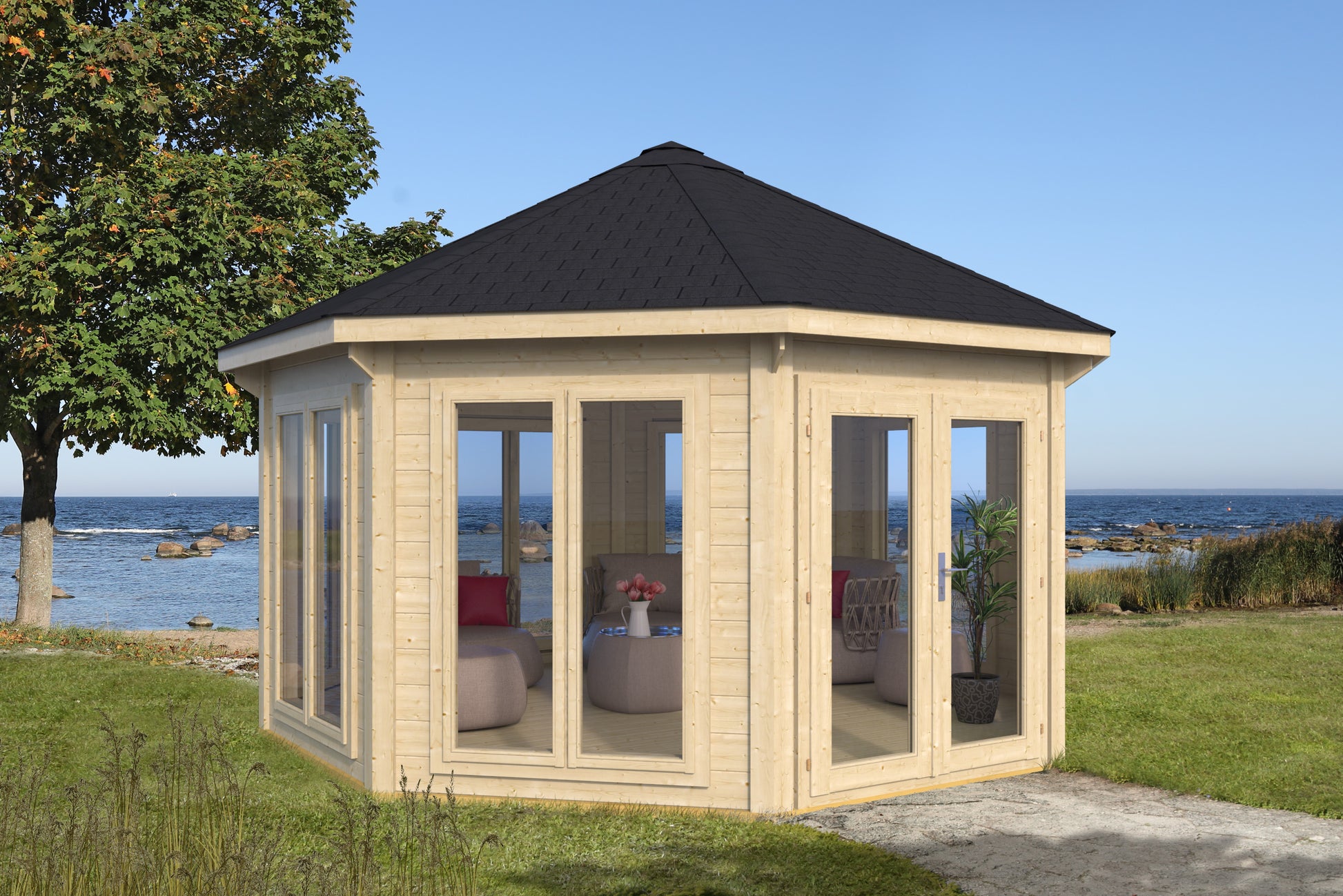O Modern Pavilion é uma estrutura elegante e versátil, ideal para quem quer adicionar sofisticação e funcionalidade ao jardim ou espaço exterior. Construído com madeira de abeto de alta qualidade, conhecida pela durabilidade e estética atraente, este pavilhão é perfeito para reuniões familiares, eventos ou simplesmente para um retiro tranquilo ao ar livre. O design moderno e linhas limpas complementam qualquer estilo de jardim, oferecendo um espaço confortável e protegido contra as intempéries, mantendo a ligação com a natureza.