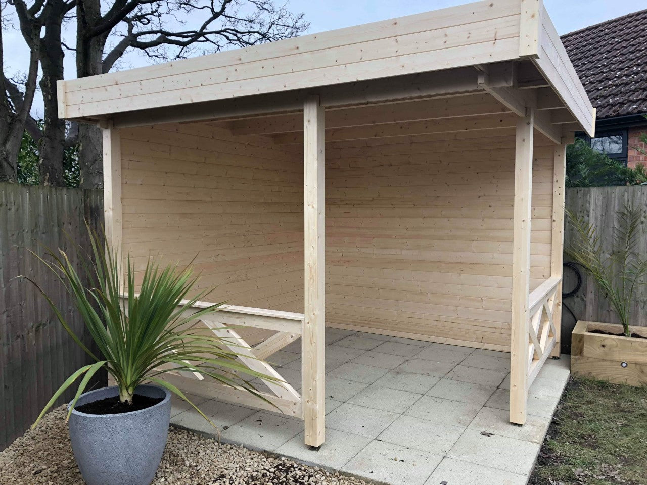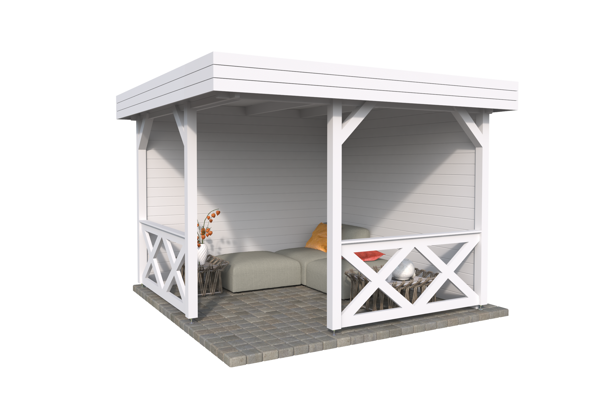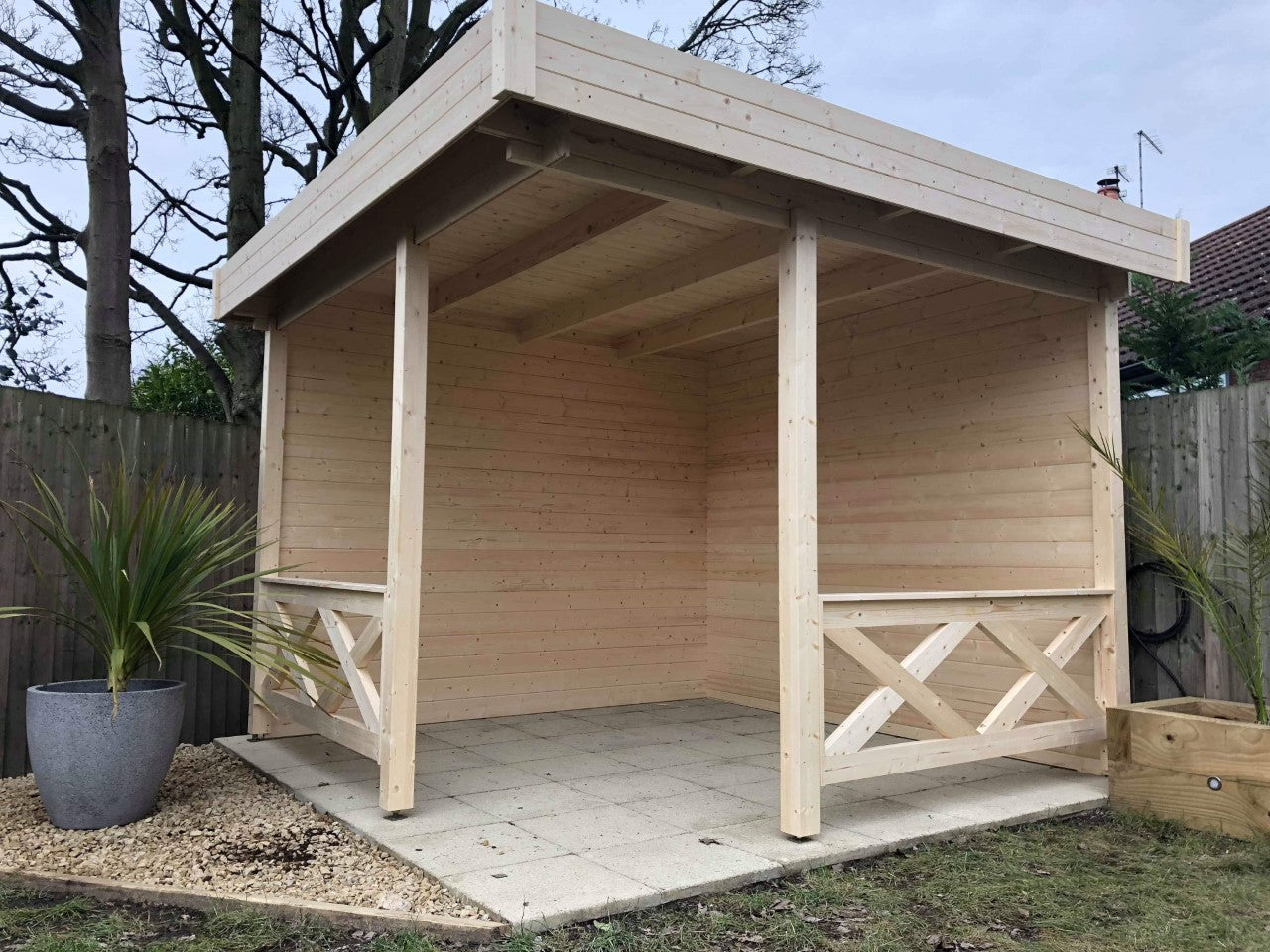 O Pavilion Flat é um espaço exterior versátil e elegante, ideal para valorizar o seu jardim ou área ao ar livre. Com design moderno de telhado plano, este pavilhão combina durabilidade e estilo contemporâneo, adaptando-se a qualquer ambiente. A estrutura aberta nas laterais permite excelente circulação de ar, oferecendo proteção parcial contra o vento e a chuva, perfeito para relaxar ou receber convidados. Construído com madeira certificada FSC, o Pavilion Flat garante sustentabilidade e resistência para uso durante todo o ano.
