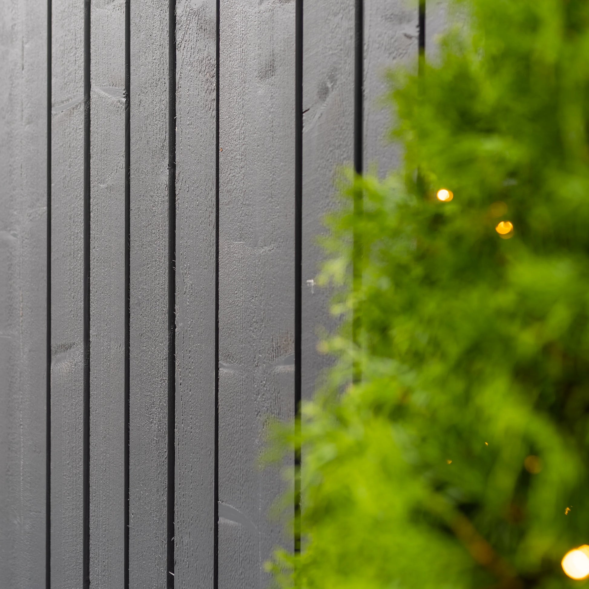 Os painéis de revestimento exterior Raita podem ser instalados tanto na horizontal como na vertical. O perfil UYM permite o encaixe entre painéis, possibilitando a criação de elegantes padrões com efeito ripado na fachada do seu projeto.