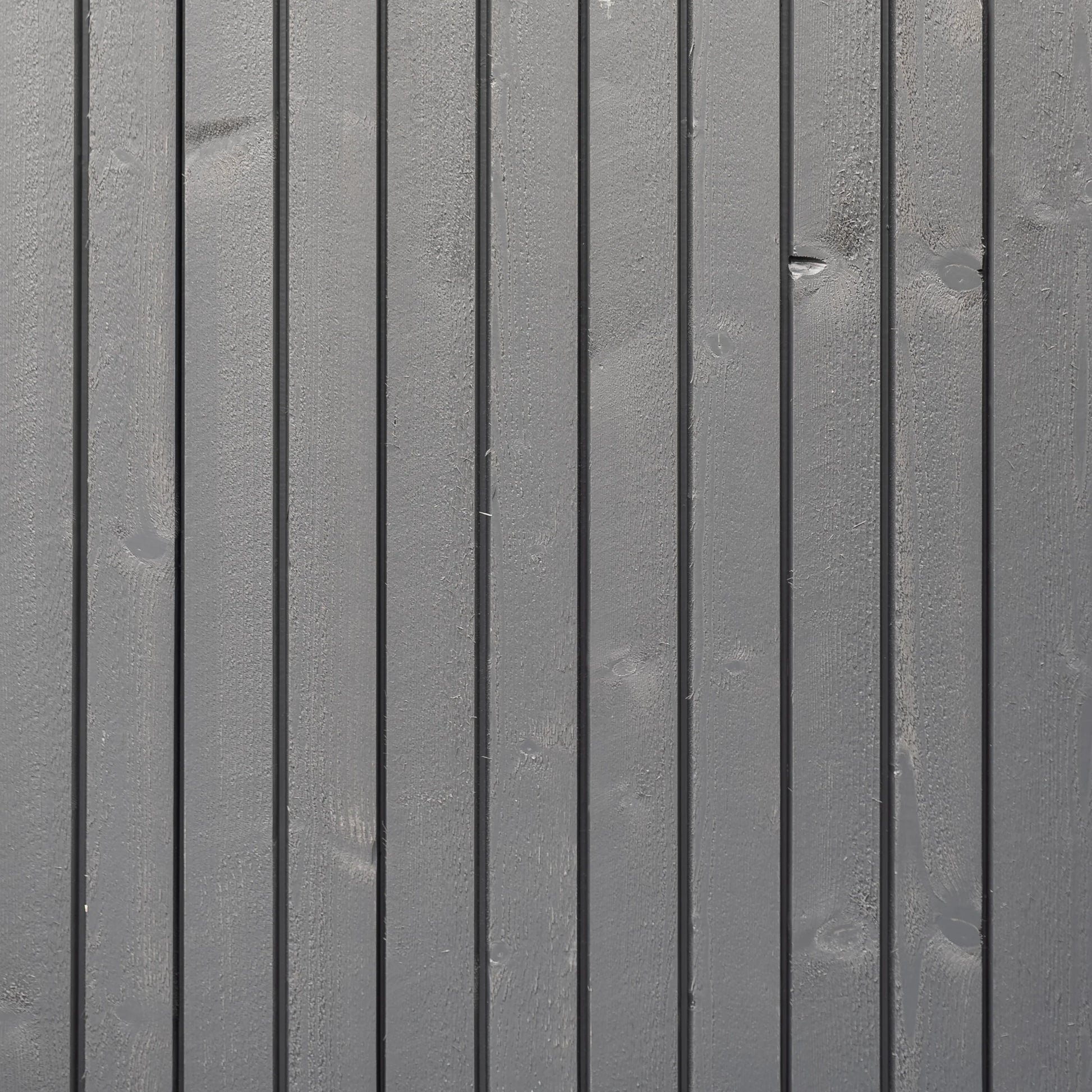 O painel vem pré-pintado em cinzento (intermédio), tendo recebido uma demão de primário e uma de tinta de acabamento. Esta pré-pintura confere já uma camada protetora à superfície da madeira. O painel de revestimento com acabamento intermédio necessita apenas de uma leve demão final de pintura.